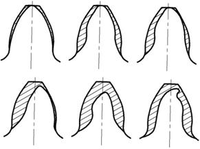 There are cases when the teeth are worn from one and both sides, depending on operative conditions. Running-in regimes of wear teeth may sustain only twice during service life of gear wheel and through the intervals with duration of each τ.