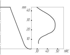 Figure 5. Change model of hardness of surface coating of gear teeth in result of hardening