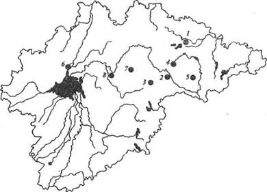 5. Комплекс памятников рубежа 1-й тыс. н.э. вир. «Лудник» ( Рис. 1: 5) располагался в 2-х км к югу от д. Починная Сопка Боровичского района Новгородской области. На левом берегу р. Лимандровки, недалеко от места ее впадения в оз. Лимандрово. В состав комплекса входило поселение со следами мощного железоплавильного производства и могильник, состоявший из сопки и 8 курганов. Памятники были открыты в 1960-е годы Г.И. Ивановским и С.Н. Орловым. В 1976 г. этими же исследователями были предприняты небольшие охранные раскопки селища, в ходе которых, были открыты остатки сыродутного горна для производства железа. К сожалению, судить о его конструкции в настоящее время практически невозможно, так как по каким-то причинам отчет об этих исследованиях составлен не был. В отделе письменных источников НГОМЗ сохранились лишь дневниковые записи и опись находок, среди которых обломки воздуходувных металлургических сопел, фрагменты плиток пода печи (?) и лепная керамика11. Находки не сохранились, а сами памятники были разрушены в ходе мелиоративных работ в 1980-е гг.