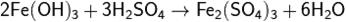 Оксид железа(III) Fe2O3 слабо амфотерен, ему отвечает ещё более слабое, чем Fe(OH)2, основание Fe(OH)3, которое реагирует с кислотами: