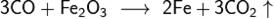 В свою очередь, монооксид углерода восстанавливает железо из руды. Чтобы данная реакция шла быстрее, нагретый угарный газ пропускают через оксид железа(III):