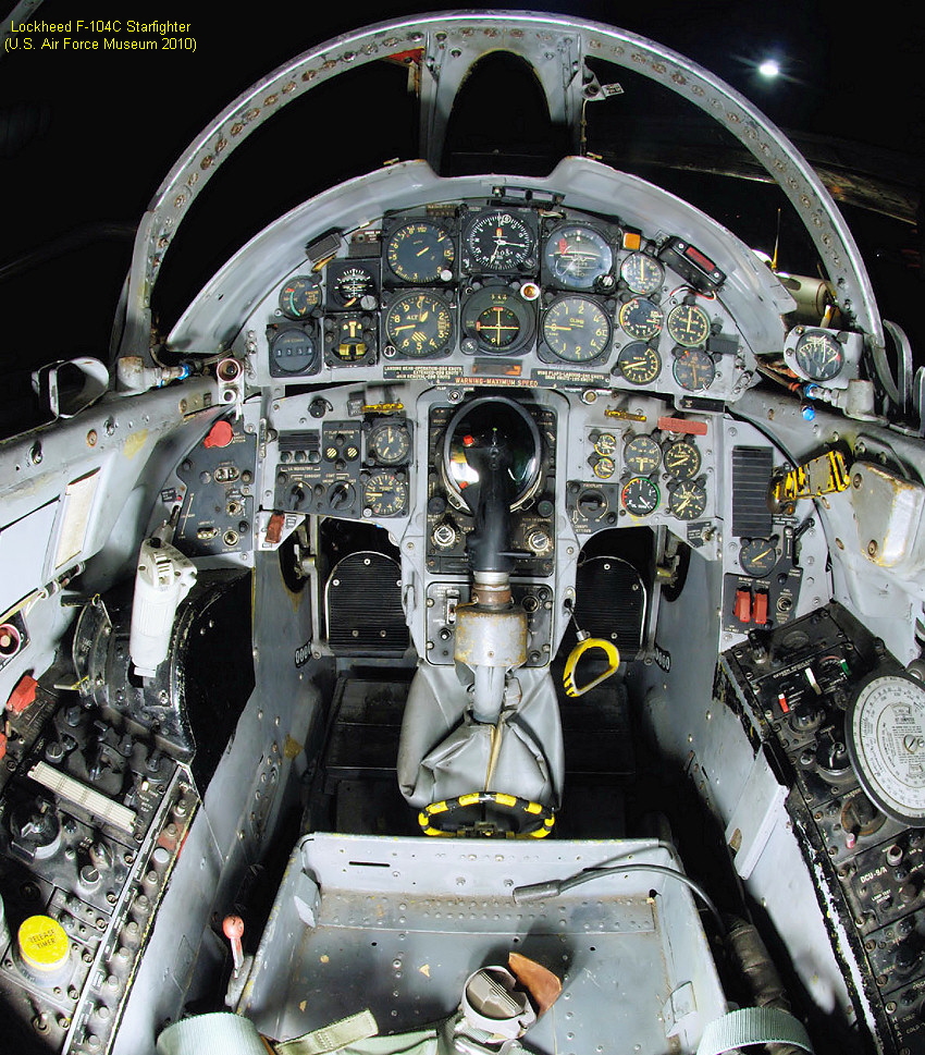 Система управленияНа F-104A и С установлена система управления огнем AN/ASG-14T. На F-104G основой комплекса управления огнем и навигационного оборудования служит двухрежимная моноимпульсная РЛС Норт Америкой F-15A NASARR с антенной диаметром 0,60 м, работающая в режимах обзора местности и воздушного пространства. При обзоре местности РЛС выдает дальность до наземной цели для визуального бомбометания, плановое радиолокационное изображение местности для бомбометания в сложных метеоусловиях и изображение рельефа местности для навигации и обхода летчиком наземных препятствий в полете на малой высоте. В режиме обзора воздушного пространства РЛС обеспечивает поиск и захват воздушной цели, пуск НАР на встречно-пересекающихся курсах, стрельбу из пушки и пуск УР при атаке из задней полусферы. Установлены также стрелковый прицел с неподвижной сеткой и вычислитель системы бомбометания. Навигационная аппаратура включает ИНС Литтон LN-3 с навигационной ошибкой 2,8 км/ч и радионавигационную систему TACAN, автоматическую систему счисления пути РН-14А. Предусмотрено использование системы радионаведения по командам с земли с директорной индикацией. Связное оборудование включает радиостанцию ДМВ диапазона. F-104S оснащен усовершенствованным вариантом R21G/H РЛС F-15G NASARR. F-104S ASA снабжен РЛС FIAR R21G/M1 УСеттерФ, способной осуществлять поиск и обеспечивать поражение целей в нижней полусфере, ИЛС, новыми оборудованием РЭБ и системой опознавания госпринадлежности, навигационной системой и другой аппаратурой.