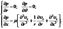 Under suggestions abovementioned the Navier-Stokes equations (1) are simplified and take on the following form: