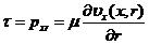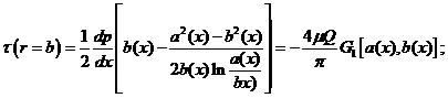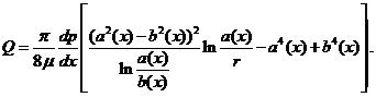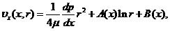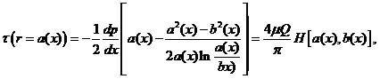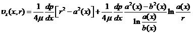;is the same as Poiseuille motion in ring-shaped channel and the same fixed area. Solution of the equation (3) for axial metal flow in deformation zone in accordance with [8] is as follows: