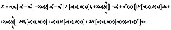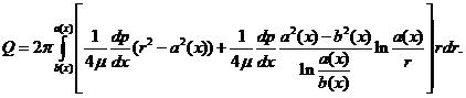 – pressure gradient, which is unknown in advance, but can be found out, if the value of metal outflow through the ring-shaped channel of deformation zone is defined or may be set experimentally. Judging from the hypothesis concerning incoercibility of pressing metal (of operating medium), output of operating medium in the ring-shaped channel of deformation zone equals