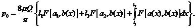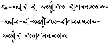 By virtue of the fact that in free cross-section (while metal fall) the upacting pressure is equal to zero, from the formula (11) we will have the following pressure ratings under ram: