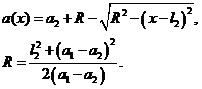 The results of solution of variational problem and differential equation (33), trough determination of effective cross section of die generator (gage) of 50MN pipe section press on the basis of original problem ( billet: material Х18Н10Т, 204х9 in diameter; diameter of a mandrel 186 mm; bloom: 196х9 in diameter) are given on the figure 2 and 3.
