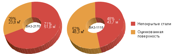 Площадь оцинкованной поверхности кузовов автомобилей ВАЗ-2170 (Lada Priora), ВАЗ-1118 (Lada Kalina)