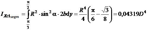 Calculating I X1 segm, surface element is located at a distance y = R•sinα. Correspondingly dy = R•cosα dα. Value b = R•cosα. Area of surface element equals dA = 2b•dy. The angle may change within