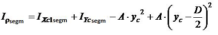 Now let us determine axial moment of inertia I X1 segm, I Y1 segm and circular segment area (fig. 2, b). Figure 2 b Determination of polar moment of inertia of circular segment about the axis YC. As one knows from mechanics of solid deformable body:
