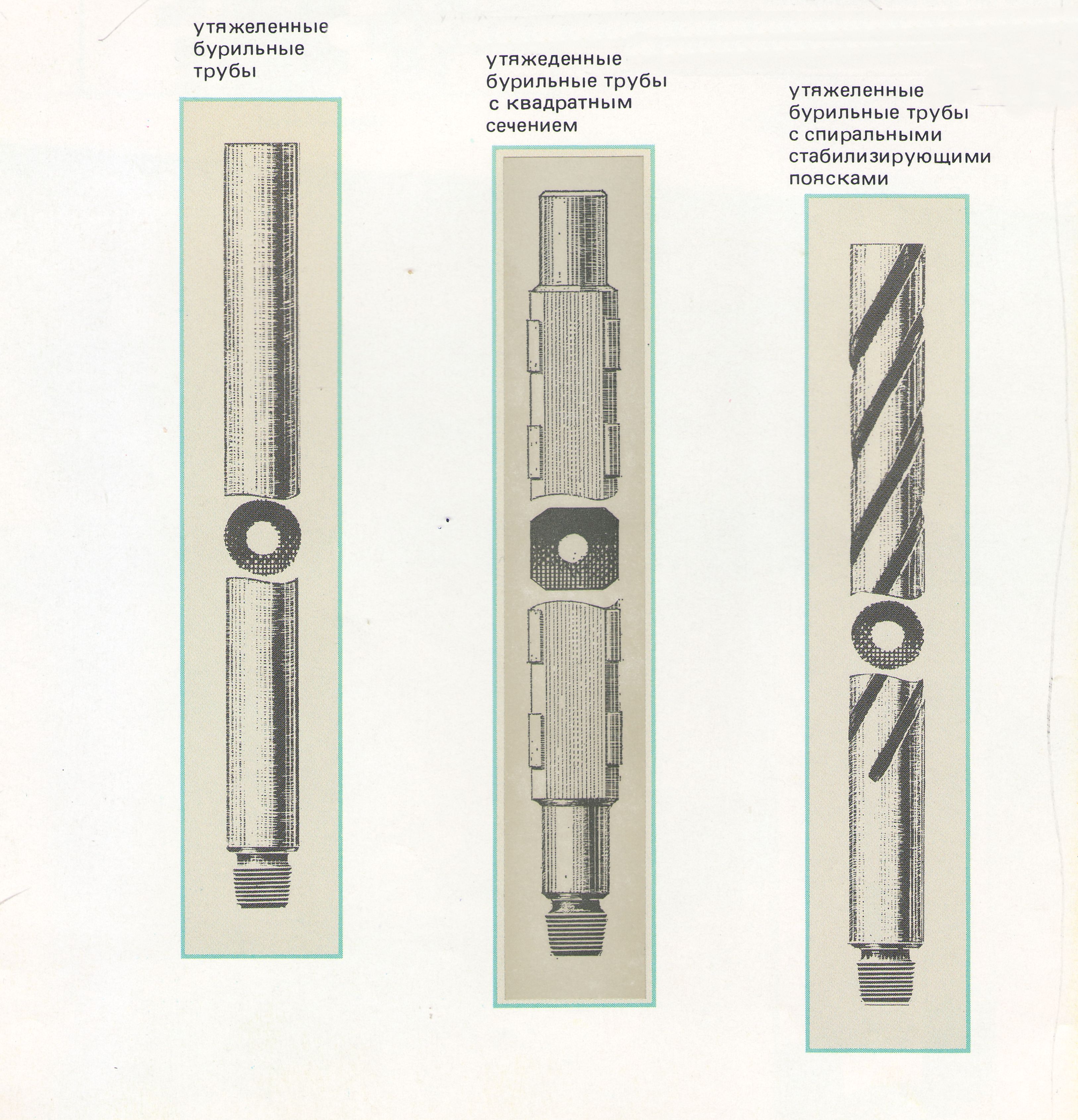 Важным элементом бурильной колонны являются утяжеленные бурильные трубы, одна из главных функций которых - создавать осевую нагрузку на долото, не допуская изгиба бурильной колонны. Утяжеленную бурильную трубу устанавливают непосредственно над долотом или погруженным двигателем
